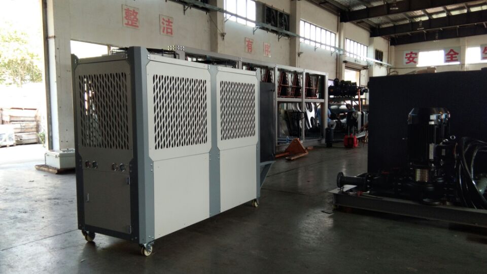 冷水機(jī)組是用于工業(yè)生產(chǎn)或?qū)嶒?yàn)時(shí)控溫、恒溫、降溫、冷卻等的設(shè)備。冷水機(jī)組工作原理是先向機(jī)內(nèi)水箱注入一定量的水/載冷劑,通過冷水機(jī)組制冷系統(tǒng)將水/載冷劑冷卻,再由水泵將低溫冷卻水/載冷劑送入需冷卻的設(shè)備,冷水機(jī)組冷凍水/液將熱量帶走后溫度升高再回流到水箱,達(dá)到冷卻的作用。