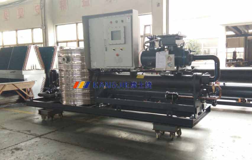 撬裝式防爆冷水機組是防爆冷水機組、泵、水箱等都在一個撬上的機組,方便運輸及安裝。有高溫型、中溫型、低溫型、超低溫型、冷熱兩用型等。
