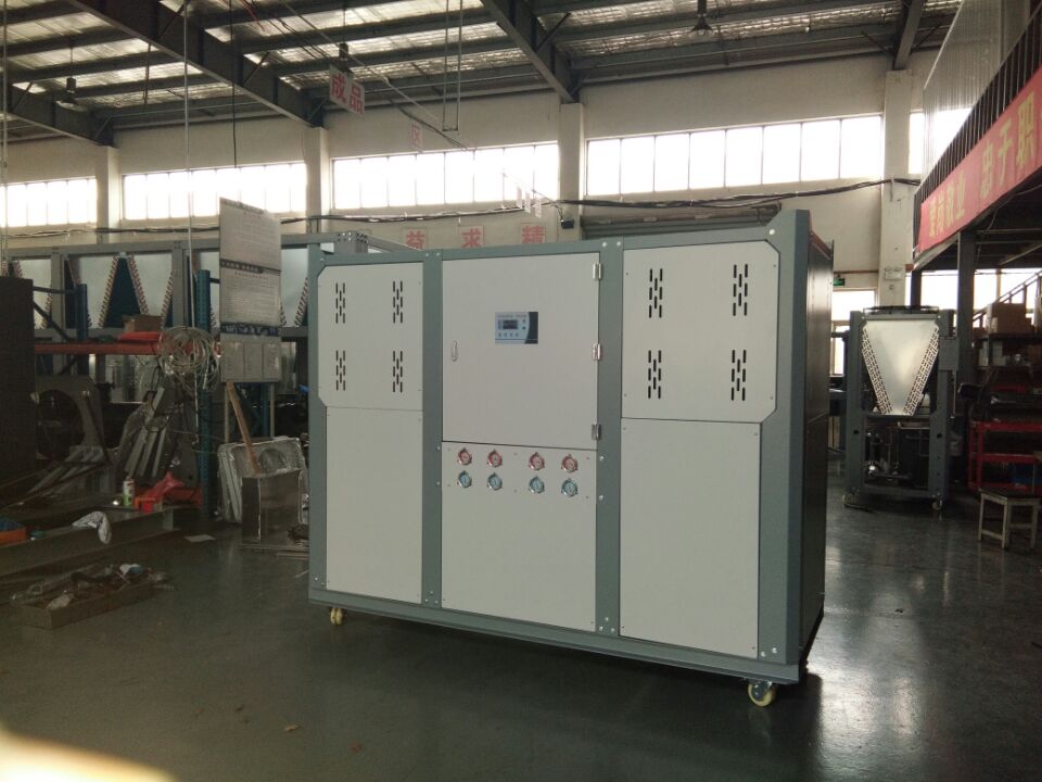 水冷式工業(yè)制冷機組是通過冷卻塔以冷卻循環(huán)水為冷凝方式的控溫設備,有箱式和螺桿式。箱式單機輸出馬力從3HP~60HP,螺桿式單壓縮機輸出馬力從30HP~280HP,螺桿式雙壓縮機輸出馬力從220HP~560HP.