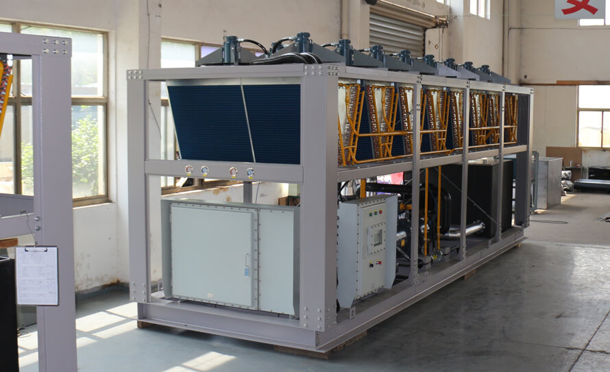 2)以鹽水為載冷劑的河南風(fēng)冷冷水機(jī):可提供-5℃~-40℃低溫載冷劑;